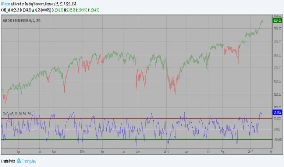 This indicator plots average of three different length CMO's. This indicator