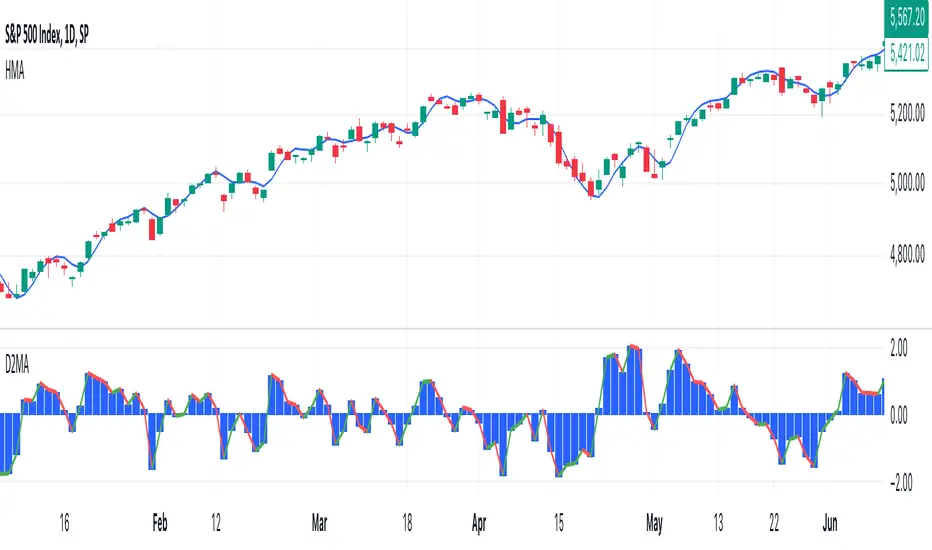 The script is called "D2MA" (Distance to Moving Average). It calculates the distance between the closing price and a user-selected type of moving average (MA). It also plots this distance on a chart, allowing users to see how far the price is from the chosen moving average. Users can choose to display this distance as either an absolute value or as a percentage.