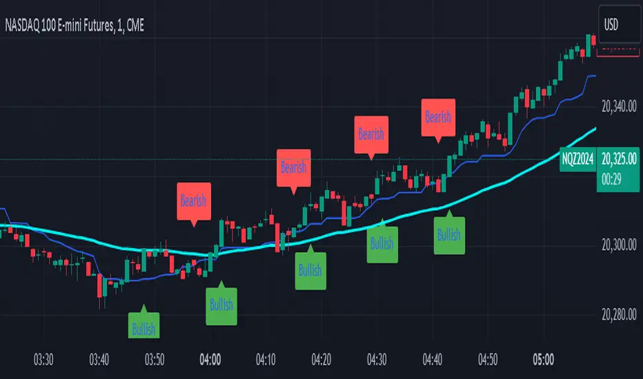 Bullish Labels (Green): Appear when a bullish crossover happens.