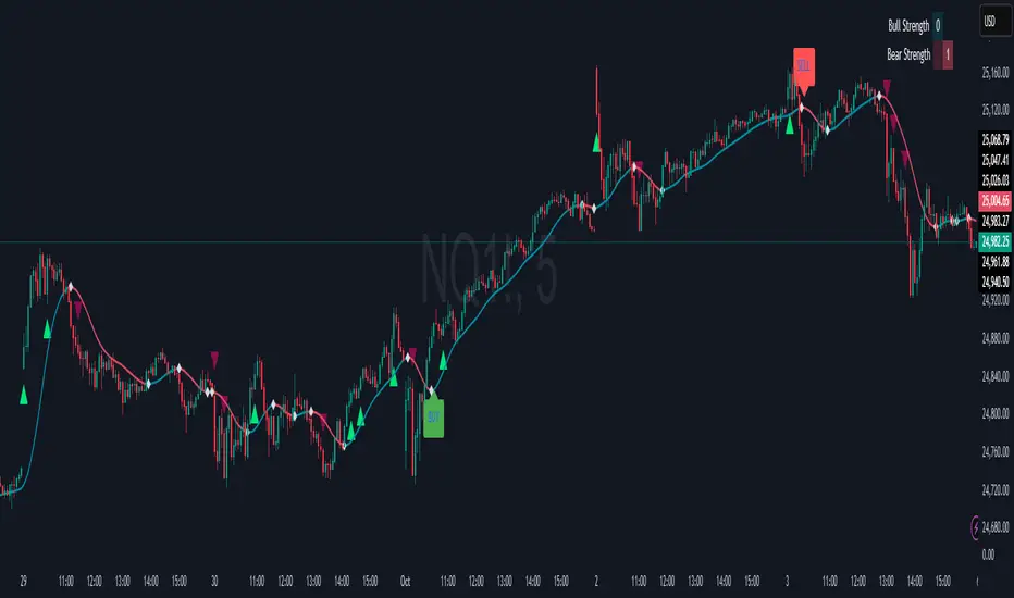 It blends EMA–SMA smoothing, multi-tiered momentum bands, and adaptive signal logic to reveal when markets shift from calm to explosive.
