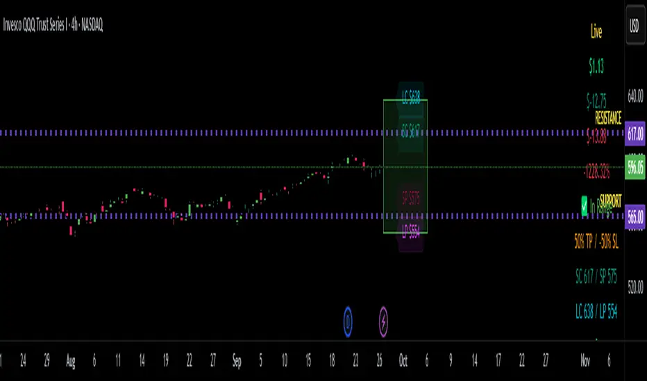 Use Setup Mode to preview strike structures based on IV proxy, ATR, delta targeting, and risk tier (High/Mid/Low/Delta). Use Live Mode to track real trades, enter strike/premium data, and monitor live P&L, delta drift, and range status.