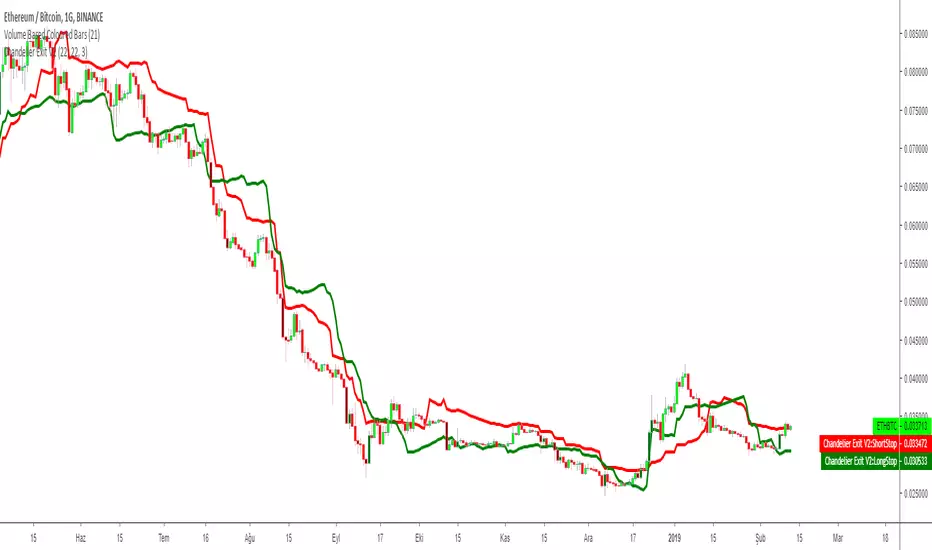 Chandelier Exit Version 2 with two lines Long Stop and Short Stop