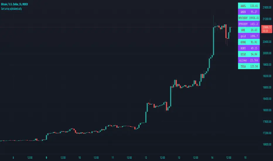 • This educational script will sort an array of tickers alphabetically and place these values in an table, together with the according current price value next to each ticker.