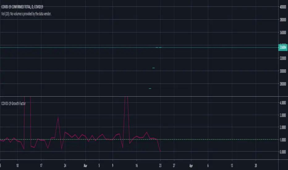 Shows the growth factor over time of SARS-COV2 using the total global data.