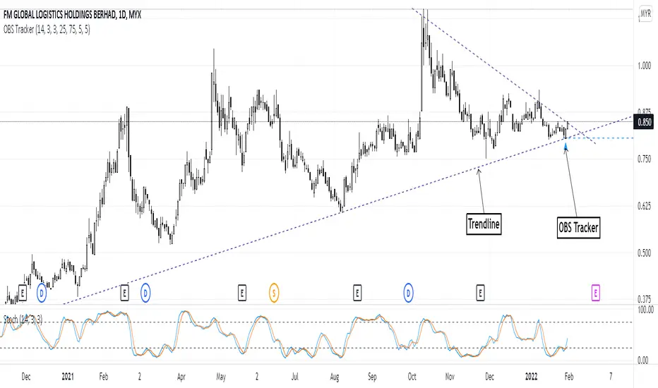- When Stochastic crosses at Oversold area, a Blue Triangle will appear below the candle with a Blue Dotted Line at the low of the current candle