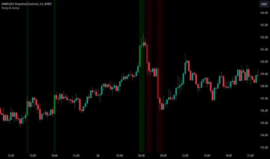 - Pump/dump rallies: The background turns green during sequences of consecutive pumping candles and red in the presence of sustained dumping.