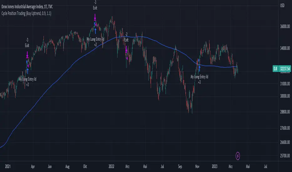 Add the strategy to your chart by searching for "Cycle Position Trading Strategy" in the TradingView "Indicators & Strategies" section.