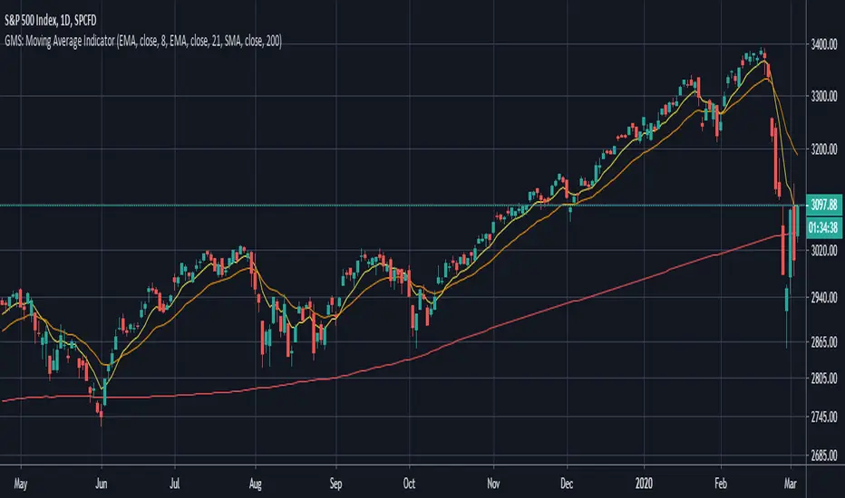 This is a moving average indicator built the way I would want it. There are 3 moving averages with On/Off toggles. It makes it easier than having to add each one separately over and over. Now it's nice and easy all in one spot!