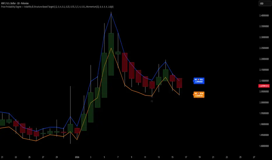 Price Probability Engine — Volatility & Structure-Based Targets is a lightweight price-target framework that blends volatility, market structure, and measured-move logic into a single averaged target on both the bullish and bearish side.