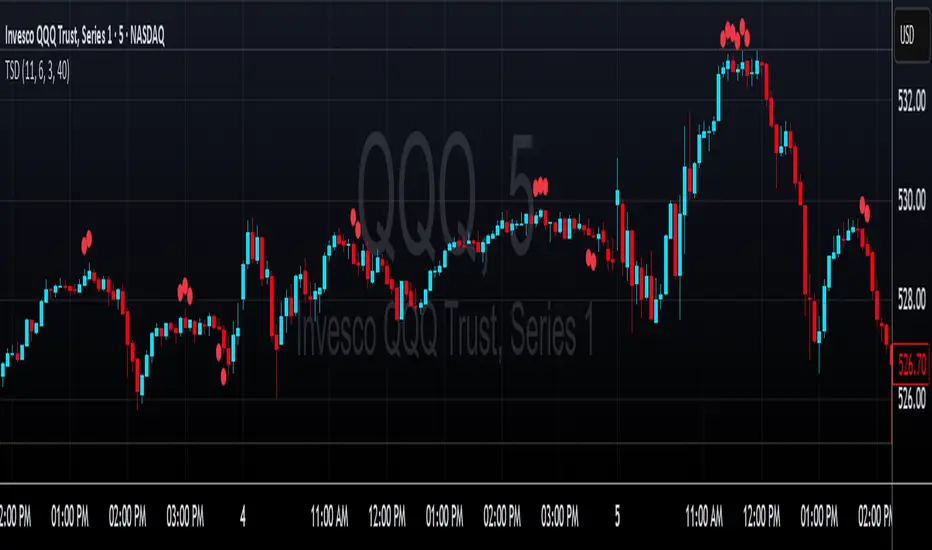 The LRHA Trend Shift Detector is an advanced momentum exhaustion indicator that identifies potential trend reversals and changes by analyzing Linear Regression Heikin Ashi (LRHA) candle patterns. TSD focuses on detecting when strong directional moves begin to lose momentum.