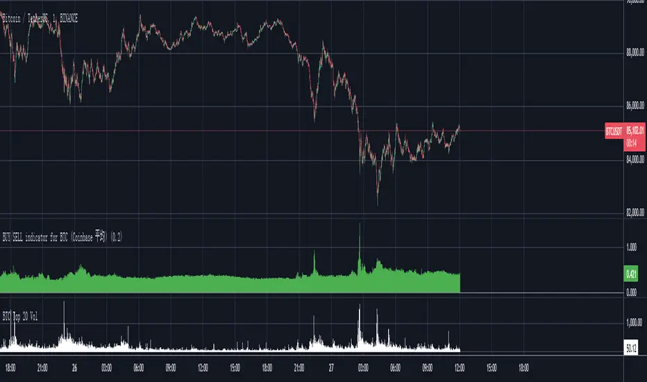 The indicator works by fetching real-time volume data for specific BTC trading pairs on various exchanges. It currently incorporates data from prominent platforms such as Binance (BTCUSDT), Coinbase (BTCUSD), OKX (BTCUSDT), Bybit (BTCUSDT), Kraken (BTCUSD), Bitfinex (BTCUSD), Bitstamp (BTCUSD), Gemini (BTCUSD), Upbit (BTCKRW), Bithumb (BTCKRW), KuCoin (BTCUSDT), Gate.io (BTCUSDT), MEXC (BTCUSDT), Crypto.com (BTCUSD), Poloniex (BTCUSDT), and BitMart (BTCUSDT). It's important to note that while the indicator aims to represent the "Top 16" exchanges, the actual number included may vary due to data availability within TradingView and the dynamic nature of exchange rankings.