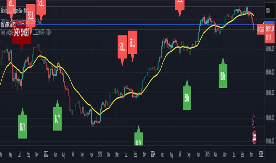 Bitcoin 20 week moving average script showing buy / sell signals