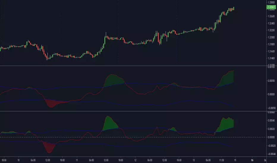 I made minor modifications, and added a zero line and changed some values. I use this indicator differently then it is intended to be used for scalping shorter time frames (15 min - 1 hour).
