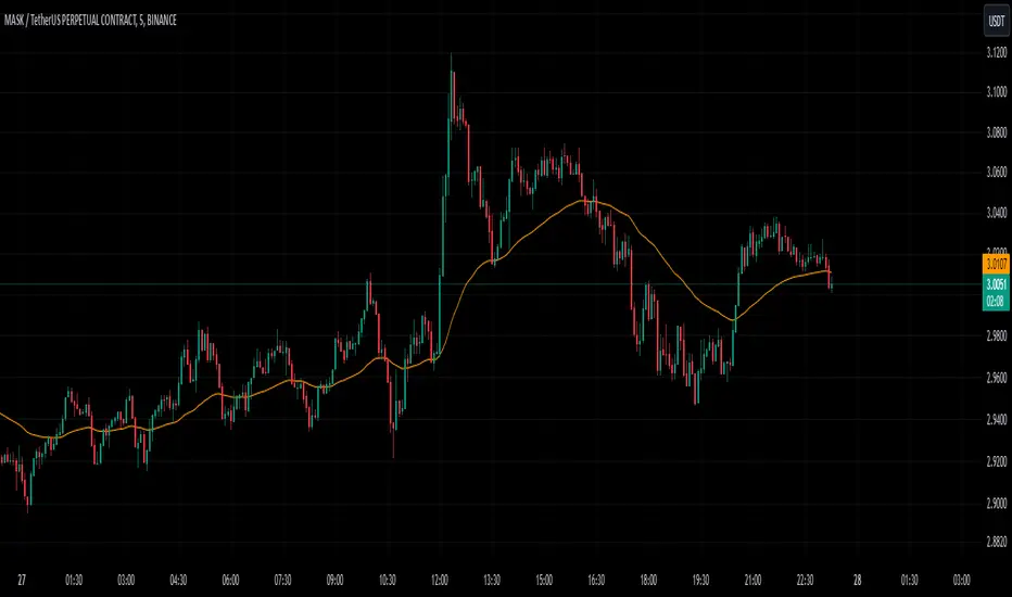 The 50-period EMA is used to determine the prevailing trend. When the price is above the EMA, it indicates a bullish trend; when it is below the EMA, it indicates a bearish trend.