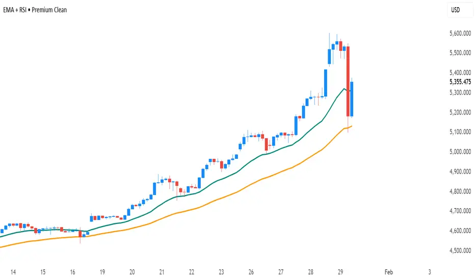 EMA + RSI • Premium Clean is a minimalist trend-following and momentum confirmation tool designed for traders who prefer clarity over clutter.