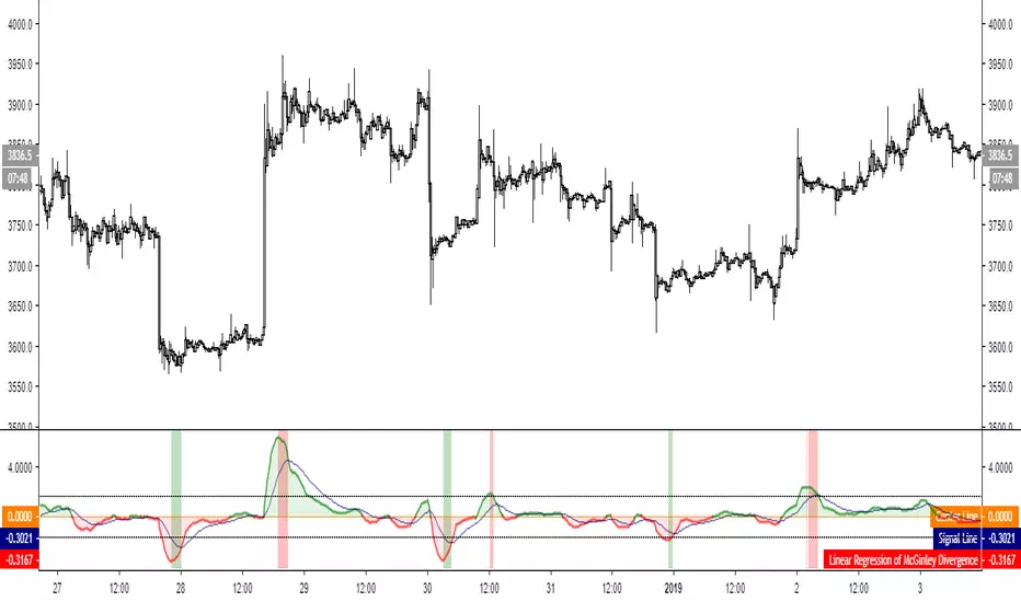 This is a linear regression of McGinley Dynamic Divergence with Long and Short conditions