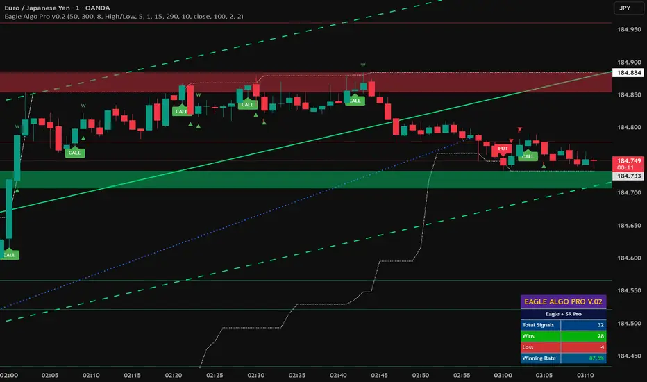 Eagle Algo Pro is a comprehensive technical analysis system designed for scalping and short-term trading. It allows traders to identify high-momentum breakouts while simultaneously monitoring key structural reversal levels. By combining Trend Follow (Eagle) and Mean Reversion (S/R) logic into a single tool, this script eliminates the need for multiple indicators, offering a clean and actionable dashboard.