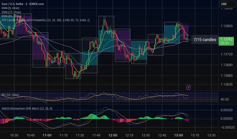 This tool reconstructs higher-timeframe (HTF) candles using 1-minute bars and overlays them directly on your chart. It includes: