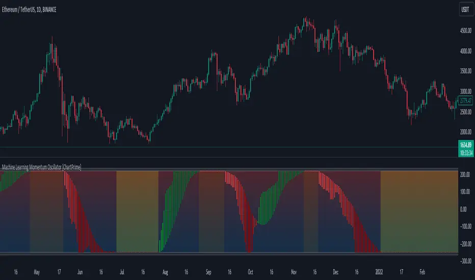 At its core, the Machine Learning Momentum Oscillator blends TSI Momentum with the capabilities of the KNN algorithm. Introducing KNN logic allows for better handling of noise in the data set. The TSI Momentum is known for understanding how strong trends are and which direction they're headed, and now, with the added layer of machine learning, we're able to offer a deeper perspective on market trends. This is a fairly classical when it comes to visuals and trading.