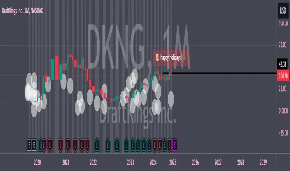 Festive Candlesticks: Green for up candles, red for down candles, matching holiday vibes.