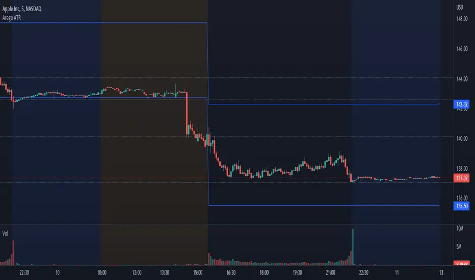 This script automatically calculates ATR on a daily basis where it would be highest and lowest and draws a line there.