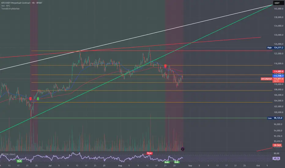 Trend and Entry Marker with MA, Supports, Fib, and Trend Lines