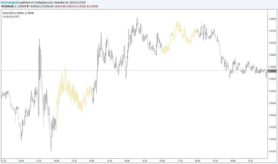 Hello, this is just a script that helps to identify "inside bars" on the current time frame or a higher one, by coloring them with the selected color.