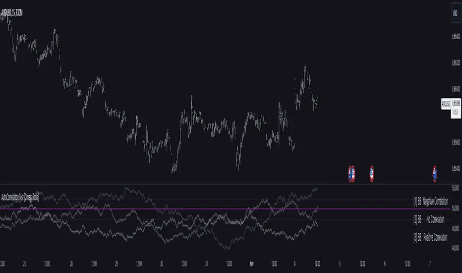 The AutoCorrelation Test indicator is designed to analyze the correlation patterns of a financial asset over a specified period. This tool can help traders identify potential predictive patterns by measuring the relationship between sequential returns, effectively assessing the autocorrelation of price movements.