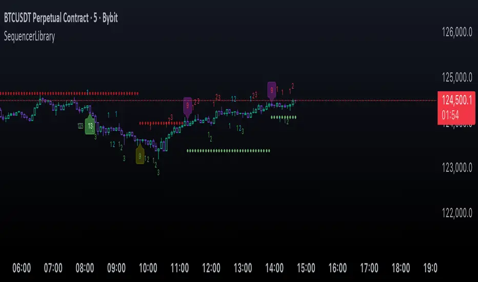 SequencerLibrary v1 is a Pine Script™ library for identifying, tracking, and visualizing