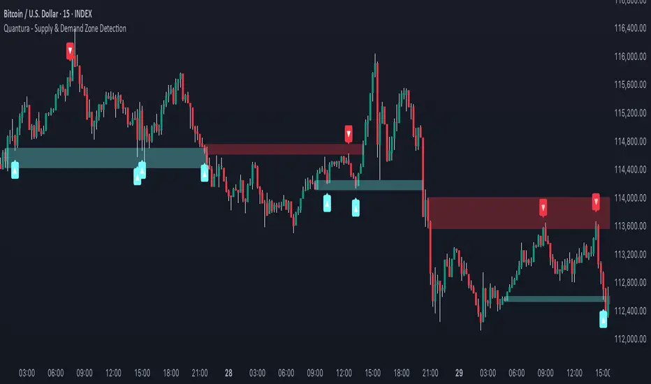 “Quantura – Supply & Demand Zone Detection” is an advanced indicator designed to automatically detect and visualize institutional supply and demand zones, as well as breaker blocks, directly on the chart. The tool helps traders identify key areas of market imbalance and potential reversal or continuation zones, based on price structure, volume, and ATR dynamics.
