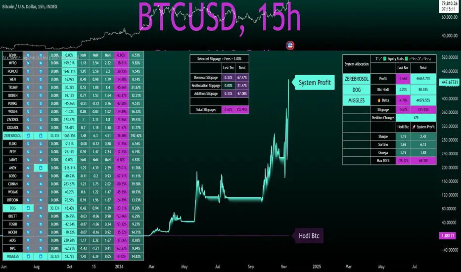 The leftmost column of the Equity Stats table showcases performance indicators for the system’s current allocations. This provides quick identification of the current strongest tokens, based on confirmed and non-repainting data as soon as the current opens and the last bar closes.
