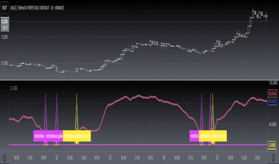The script "[blackcat] L1 Institutional Golden Bottom Indicator" is an indicator designed to identify potential institutional buying interest or a "golden bottom" in the market. It calculates a series of values based on price movements and plots them on a chart to help traders make informed decisions.