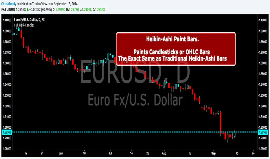 Paints Candlesticks or OHLC Bars The Exact Same as Traditional Heikin-Ashi Bars