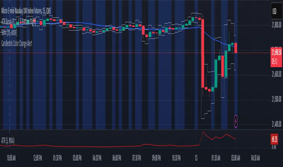 The script can also apply a background color (blue) on the chart to visually mark color changes.