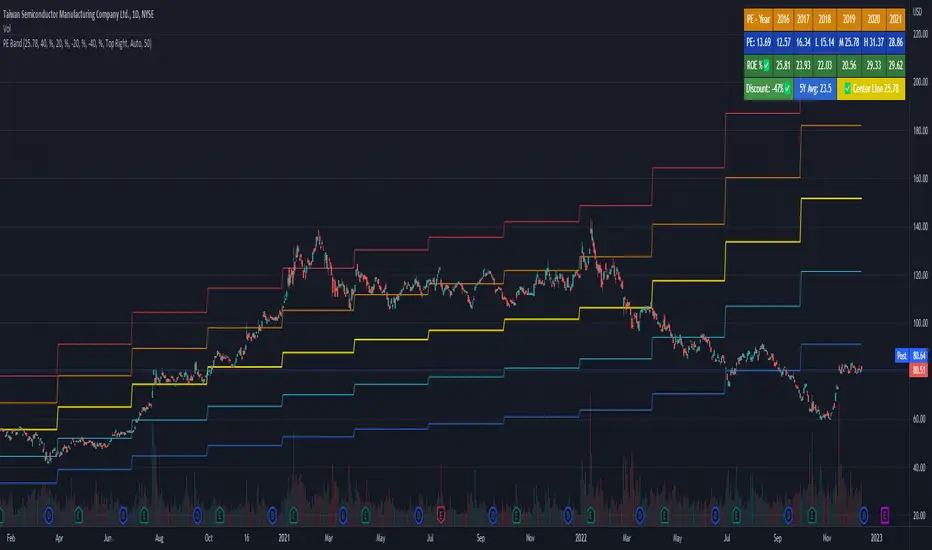 The PE ratio center line of the stock must be set every time the stock is changed because of the program limitation of Tradingview.