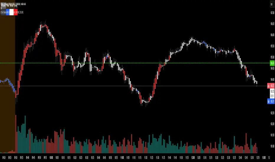 3 Band Volume matched Candles– is a clean, high-signal volume-based candle colouring system designed to highlight the extremes of market participation. Instead of using complex multi-band gradients, this simplified version focuses on what truly matters to scalpers and intraday traders: