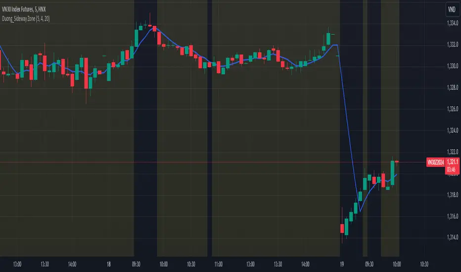 This indicator is designed to identify sideway (ranging) zones on the price chart. It uses a Moving Average (MA) and criteria such as the number of price crosses over the MA, as well as breakout checks, to determine whether the market is in a sideway state. When a sideway zone is detected, it is highlighted with a yellow background on the chart.