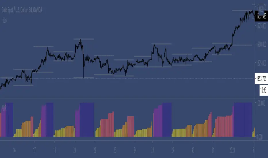 Updated and adapted using code from [JS] - Average Daily Range - Daily (DTFL) by JorgeSilvestrini.Bug fixes - now calculates on small timeframes and non forex pairs correctly.
