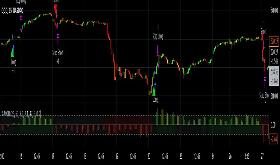 Oscillators have been a staple in financial analysis since the mid-20th century, with tools like the RSI, MACD, and Stochastic helping gauge overbought and oversold conditions. What makes the latter unique is that the stochastic utilizes highs and lows as opposed to various EMA rates of change. Kinetik's unique boundless stochastic calculation and K/D difference plotting are the heart of this strategy.