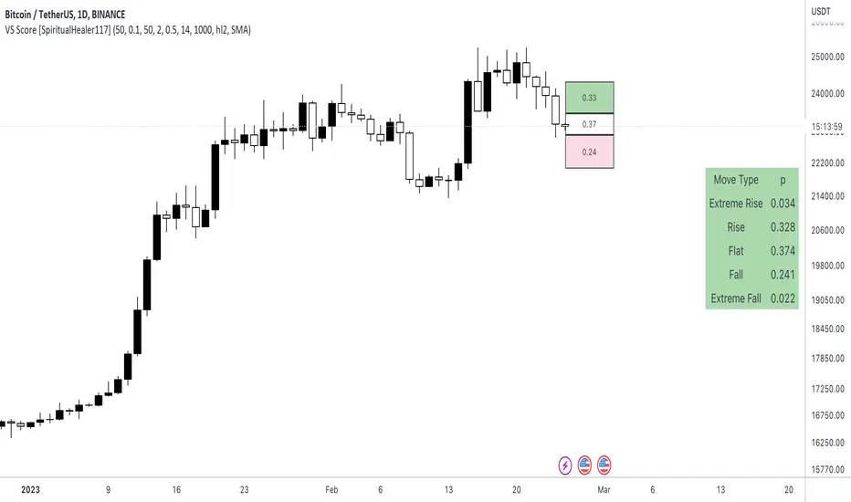 An experimental indicator that uses historical prices and readings of technical indicators to give the probability that stock and crypto prices will be in a certain range on the next close. This indicator may be helpful for options traders or for traders who want to see the probability of a move.