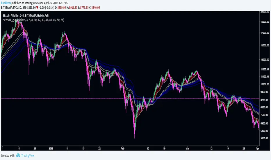I took the eVWMA and turned it into a guppy to show significant volume support levels. However, it does not appear that the settings are perfect yet, but this should serve as the perfect companion or alternative to the VPVR **in theory**. I will post an update if better settings are found, but for the time being, this should work.