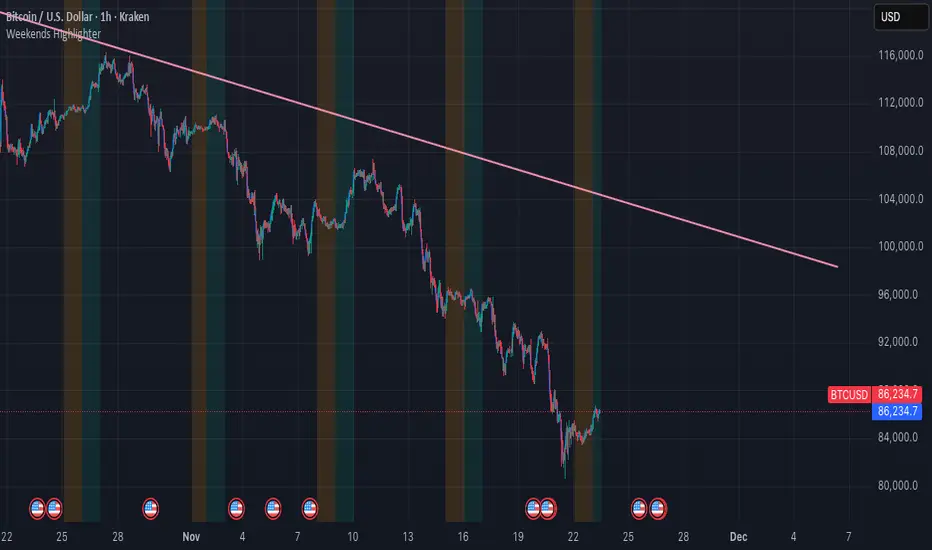 Highlights all Saturdays and Sundays on the chart with two different background colors to easily spot weekends.
