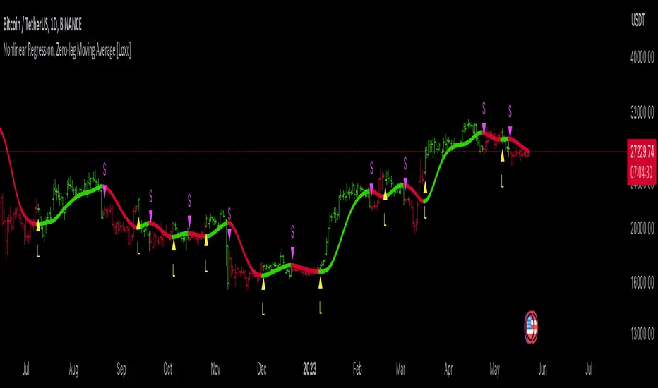 Technical indicators are widely used in financial markets to analyze price data and make informed trading decisions. This indicator presents an implementation of two popular indicators: Nonlinear Regression and Zero-lag Moving Average (ZLMA). Let's explore the functioning of these indicators and discuss their significance in technical analysis.