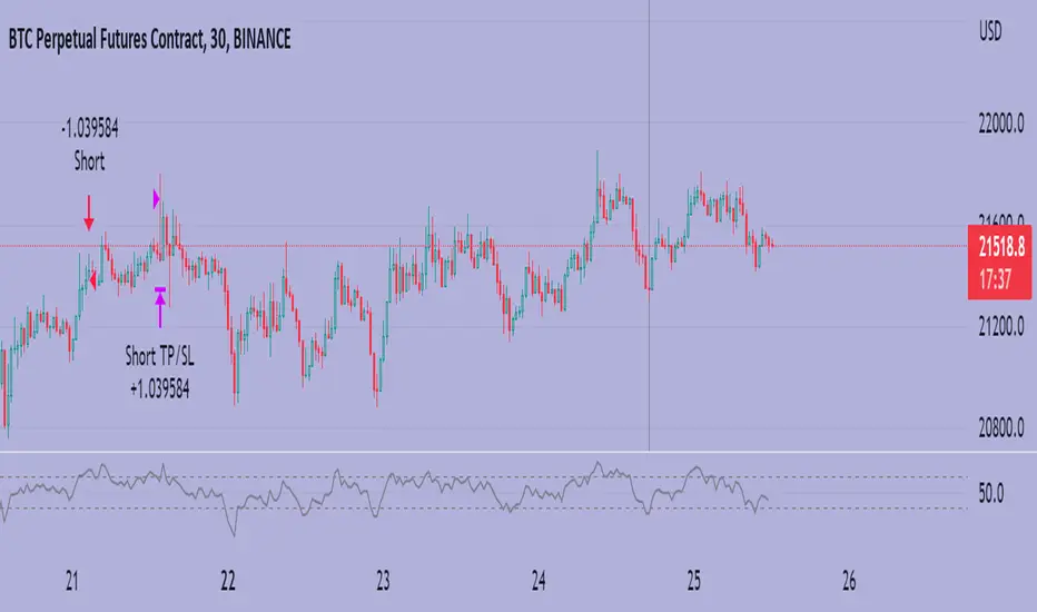 This is a scalping strategy designed to be used for crypto trading. It uses an Exponential Moving Average with a default length of 100 in order to identify the trend of the market. If the price is trading above 100, it will only take long trades, and vice versa for shorts. It places long orders when the RSI value closes below 40, and the price is also above the 100 EMA. It places short orders when the RSI value is above 60, and the price is below the 100 EMA.