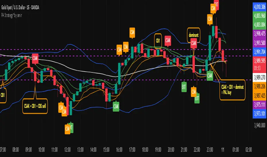 3. CSAK with CB1 and Dominant Break (PAL): A setup involving a CSAK candle, CB1, and a break of a Dominant candle/level is identified as a **PAL**. Similar to the CBS rule, an instant entry is taken on M5/M15, and a **WMA 5/10 retracement entry is utilized for higher timeframes.