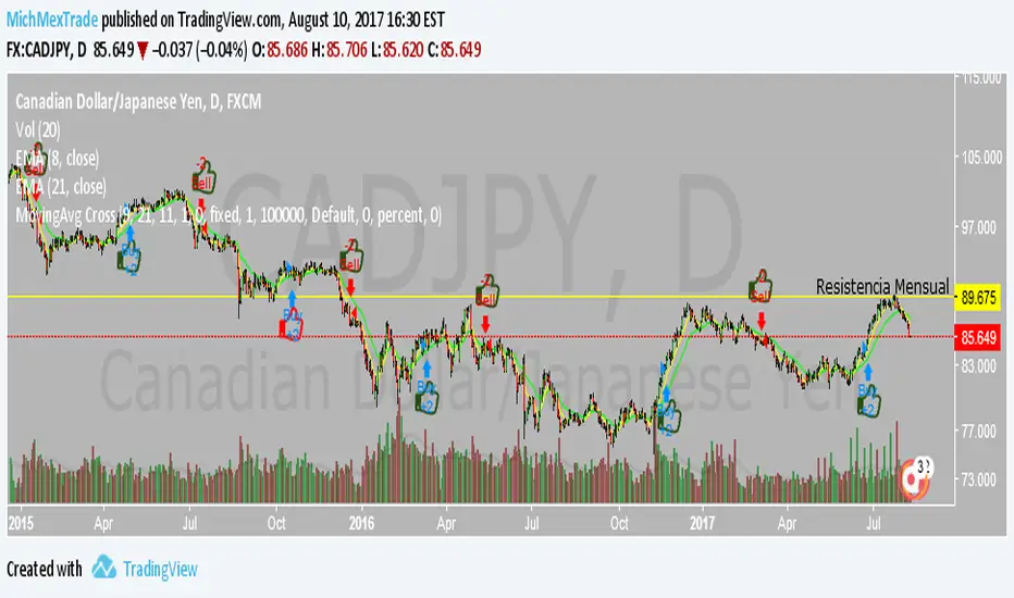 Simple signal buy and sell with emas crossing, works way better in daily charts