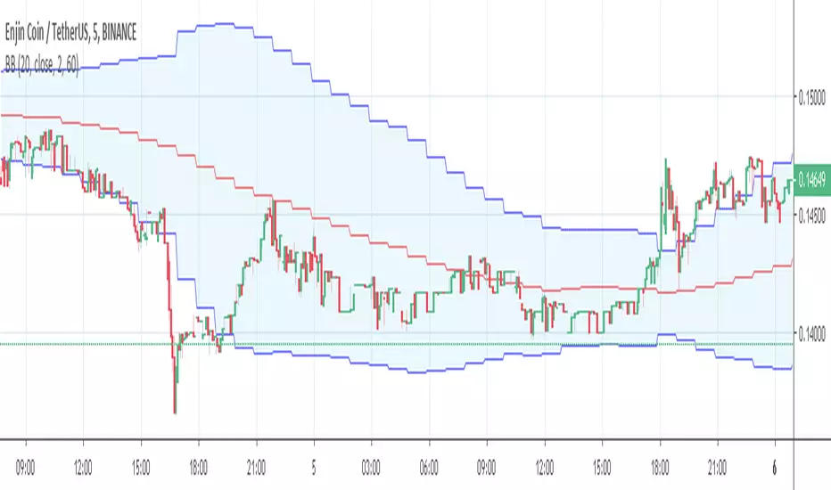 This script is for using Bollinger Bands at different time frames. I usually use it at 5m chart while Bollinger Bands at 1 hour resolution.