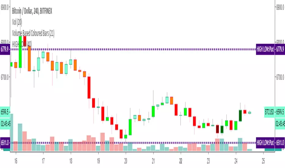 Indicator plots the highest and lowest price levels in a certain period of user defined length EXCEPT LAST BAR!