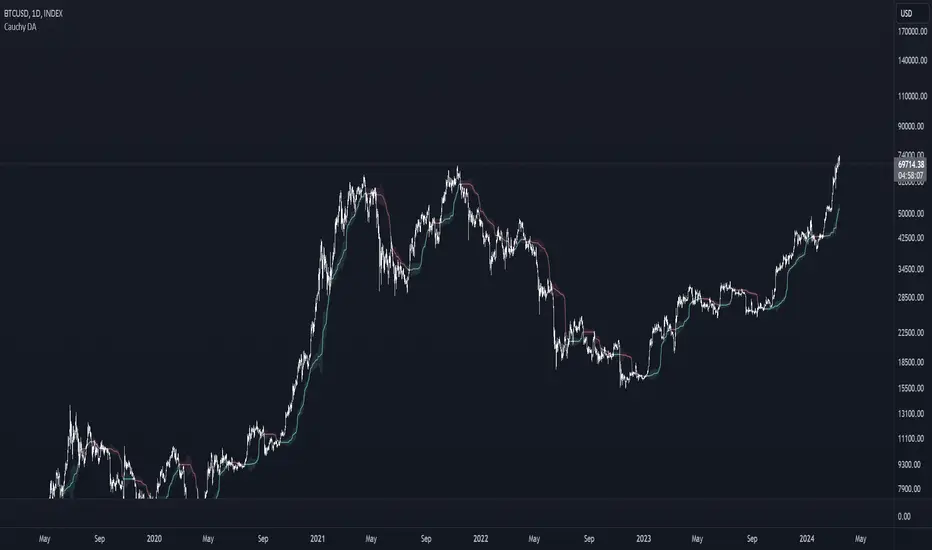 This custom Pine Script indicator is designed to analyze assets, including cryptocurrencies, through a lens inspired by the Cauchy distribution's characteristics. It focuses on identifying potential long and short opportunities by evaluating the asset's price position relative to a dynamically calculated median price and a scale parameter. Here's a breakdown of its components and how to use it: