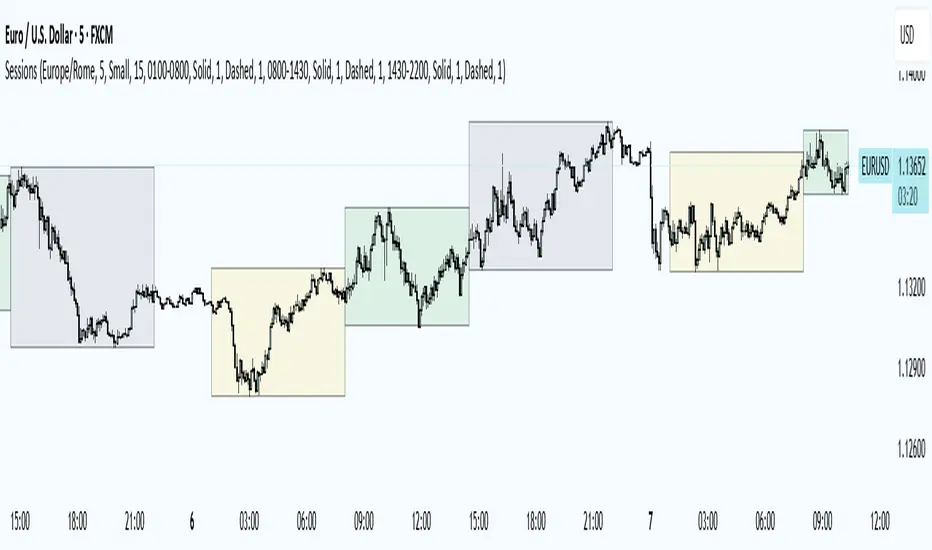 Highlights the Asia, London, and New York trading sessions with dynamic High-Low boxes.